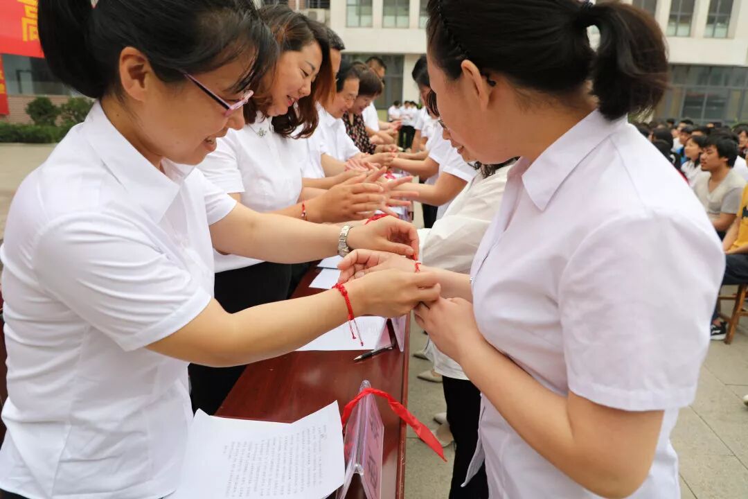 红色的丝带,红色的结,代表着我们新起点高三年级的火热情怀和真挚爱心。这是学校送给每一位高三勇士的真切祝福,愿你们自信满满,沉着冷静,微笑面对,愿你们乘风破浪,决胜高考,金榜题名。