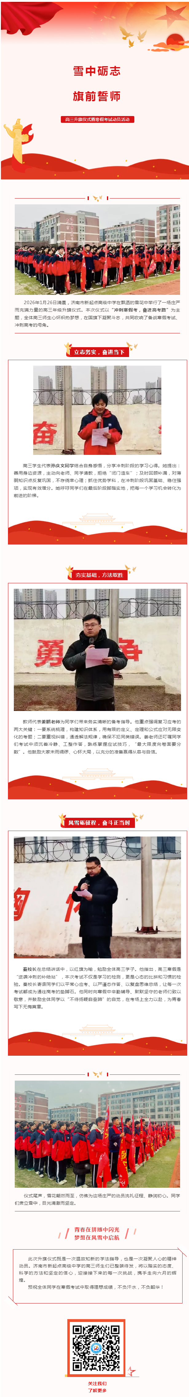 雪中砺志,旗前誓师——济南市新起点高级中学举行高三升旗仪式暨寒假考试动员活动