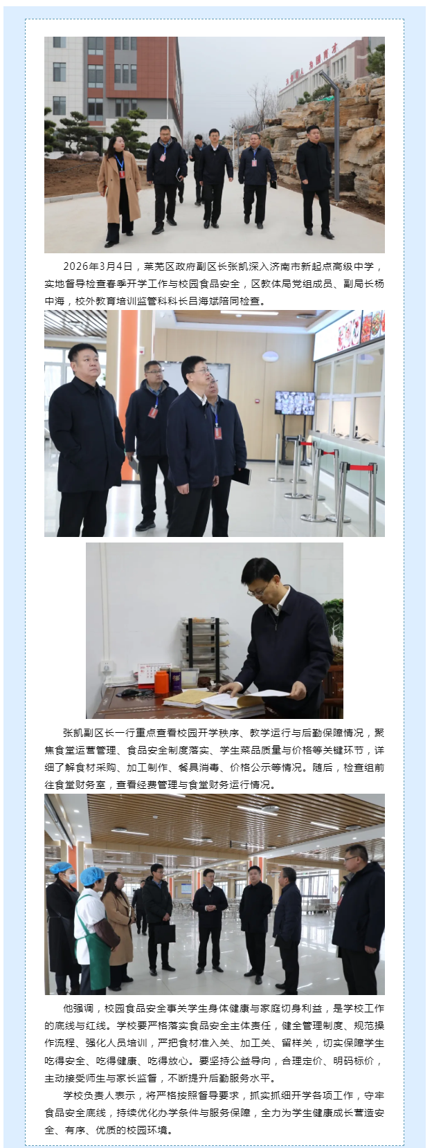莱芜区副区长张凯到济南市新起点高级中学督导开学及食品安全工作